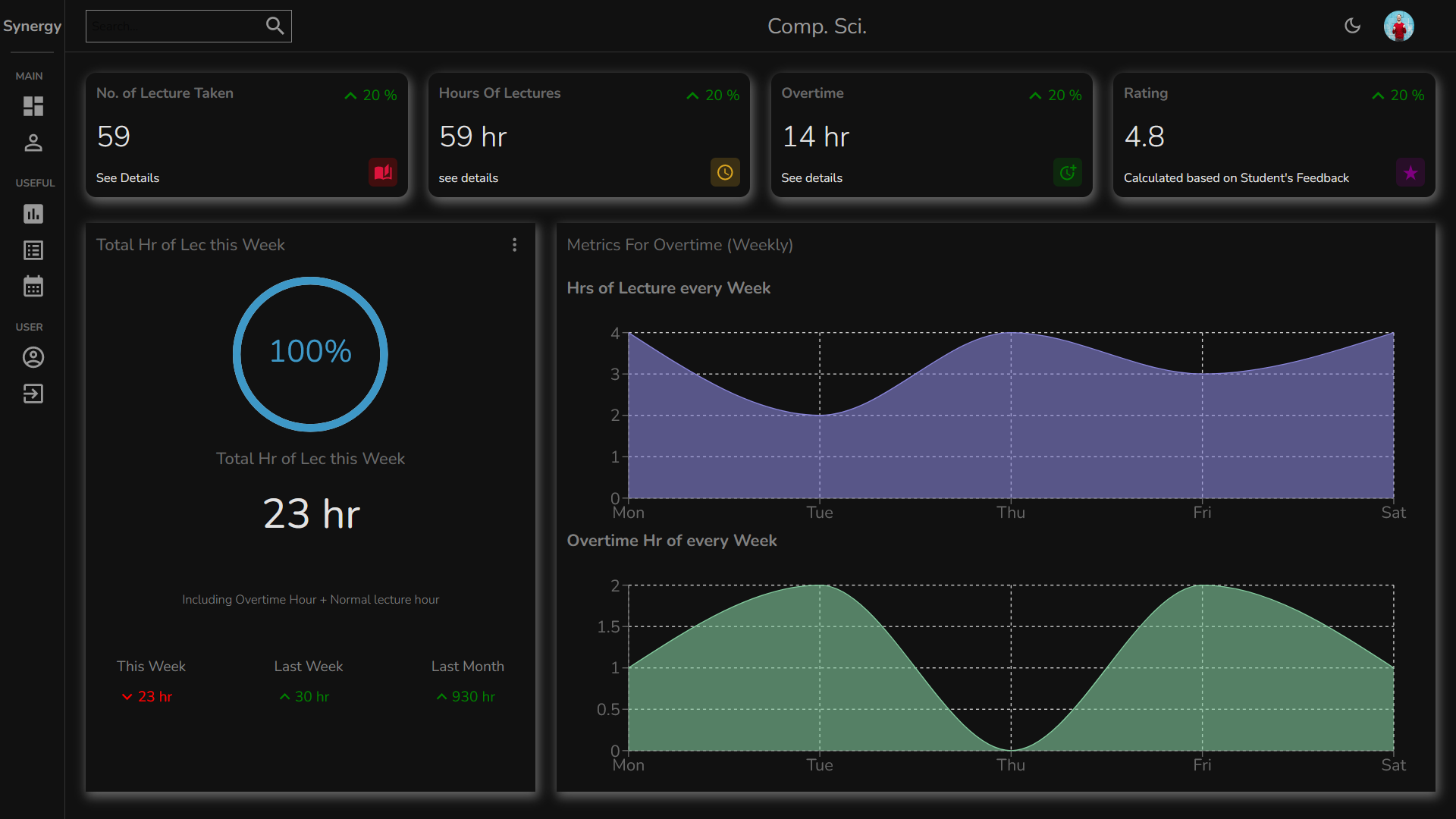Frontend Admin Portal for teachers and professor so that they can schedule lectures and visualize how is their performance. They can apply for leave and handle their student.Also for teacher/professor on basis of hours of lectures they will be rewarded with Courses.